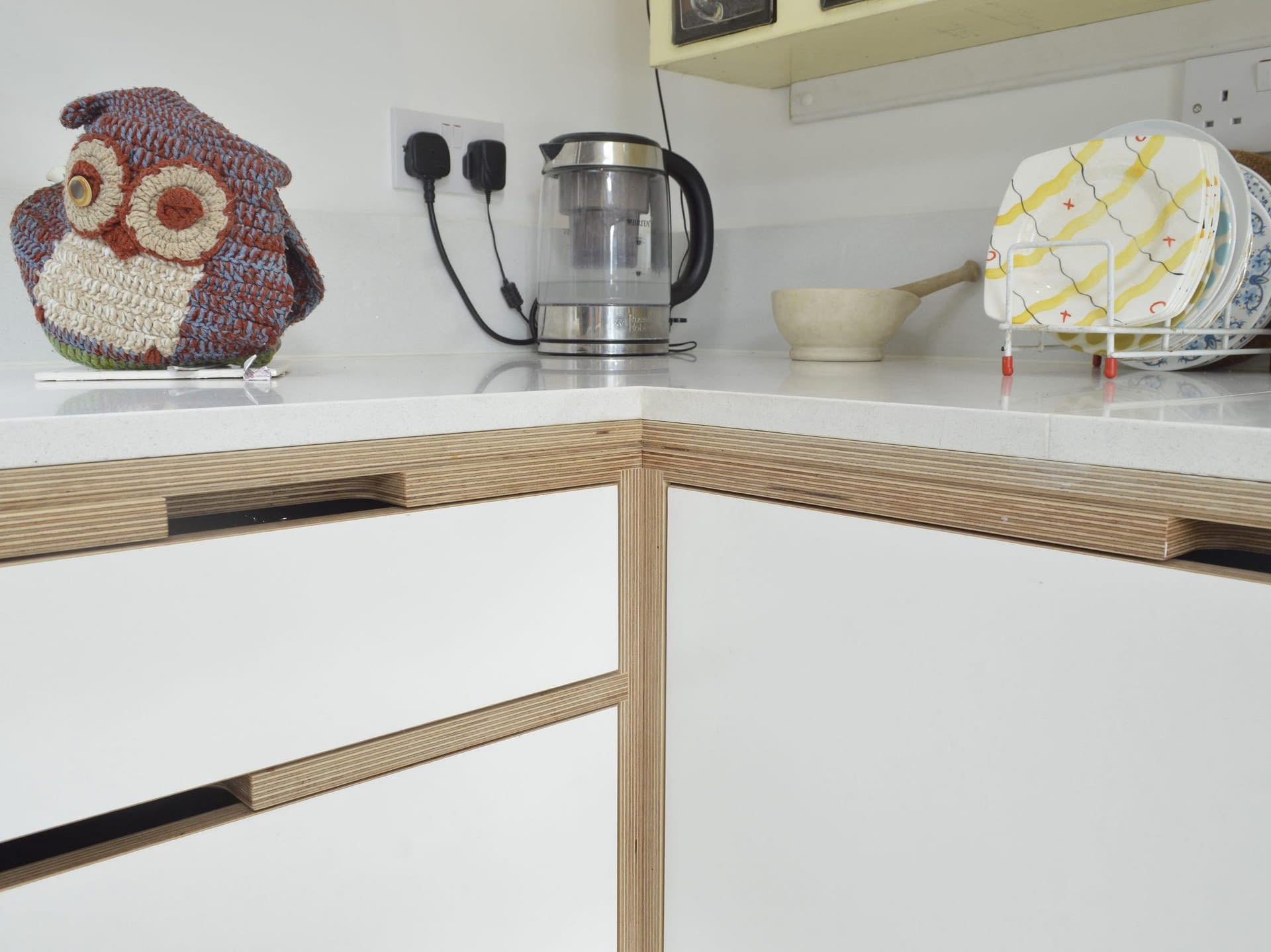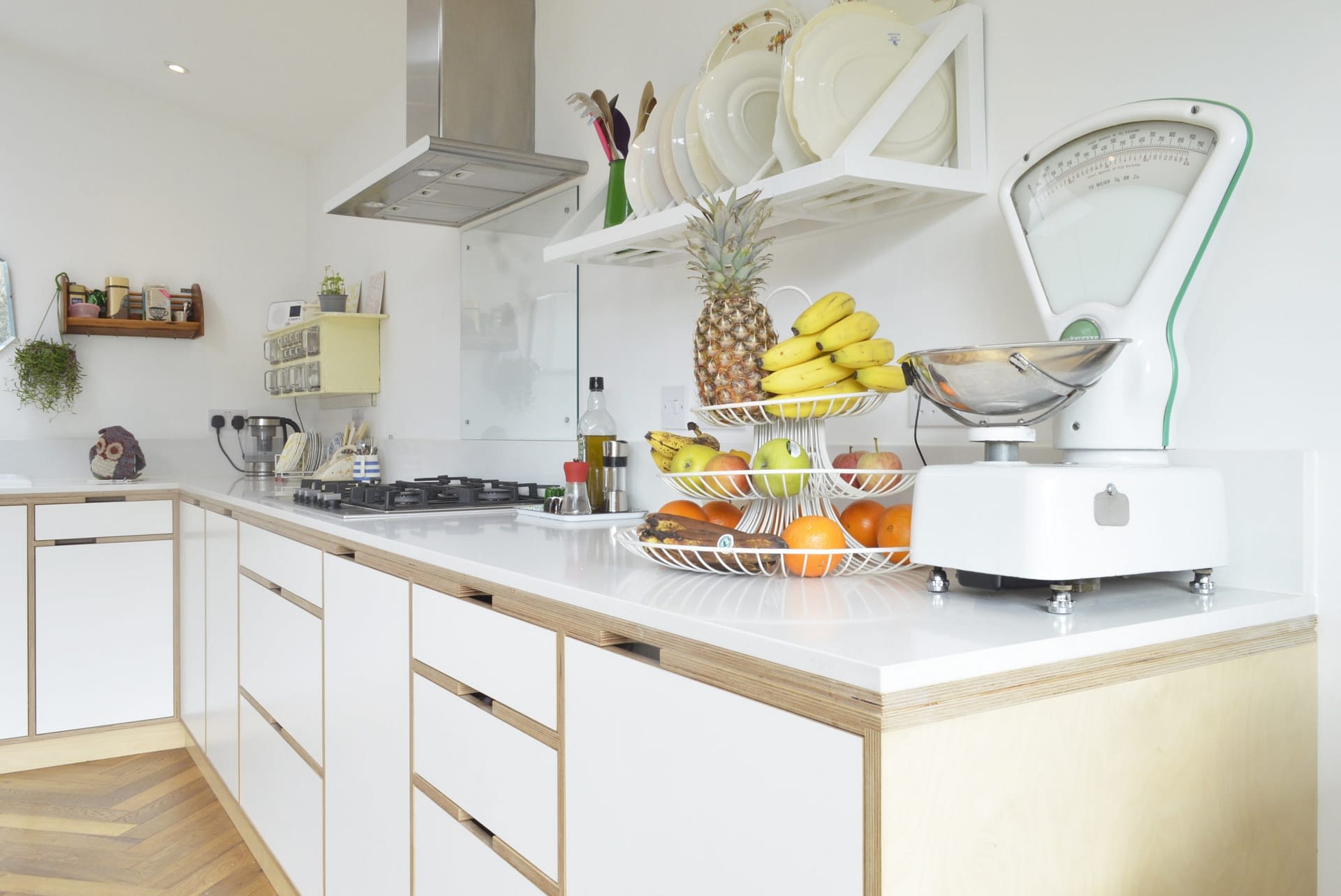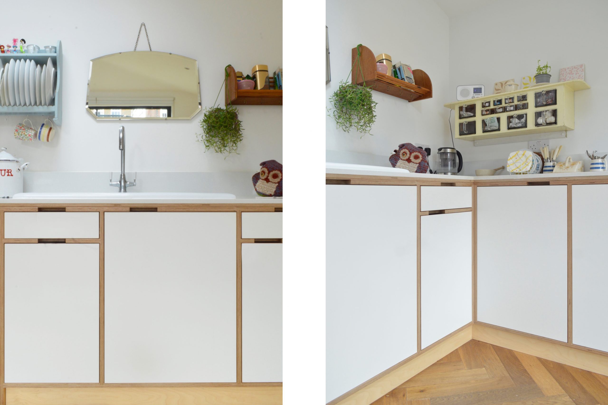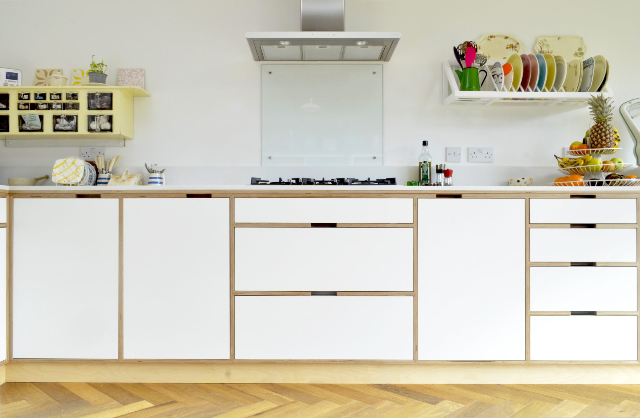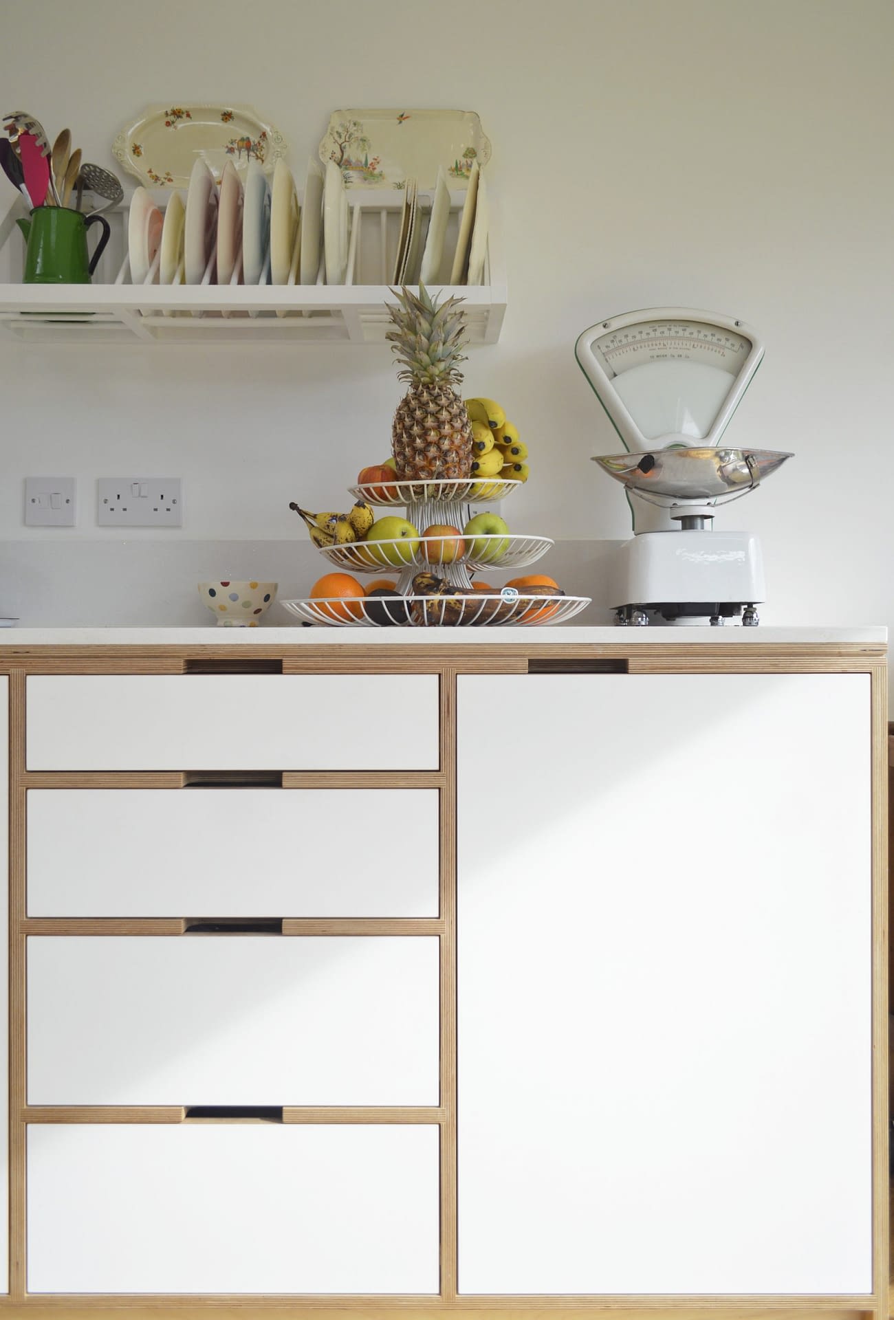 Making use of the ubiquitous birch plywood these kitchen units are contemporary classics. Joinery detailing includes expressed end grain framing and inlaid melamine faced door and drawer fronts with simple cut away grab recess's providing an elegant flush finish. The design concept evolved from the clients initial and relatively specific proposal combined with the studios recommendations for layout and material/colour palette. Some items from the clients existing kitchen have been integrated into the design to ensure their continued use and to minimize unnecessary waste.