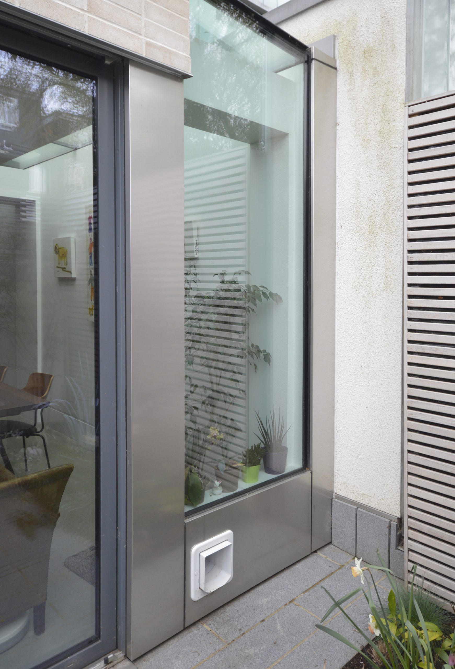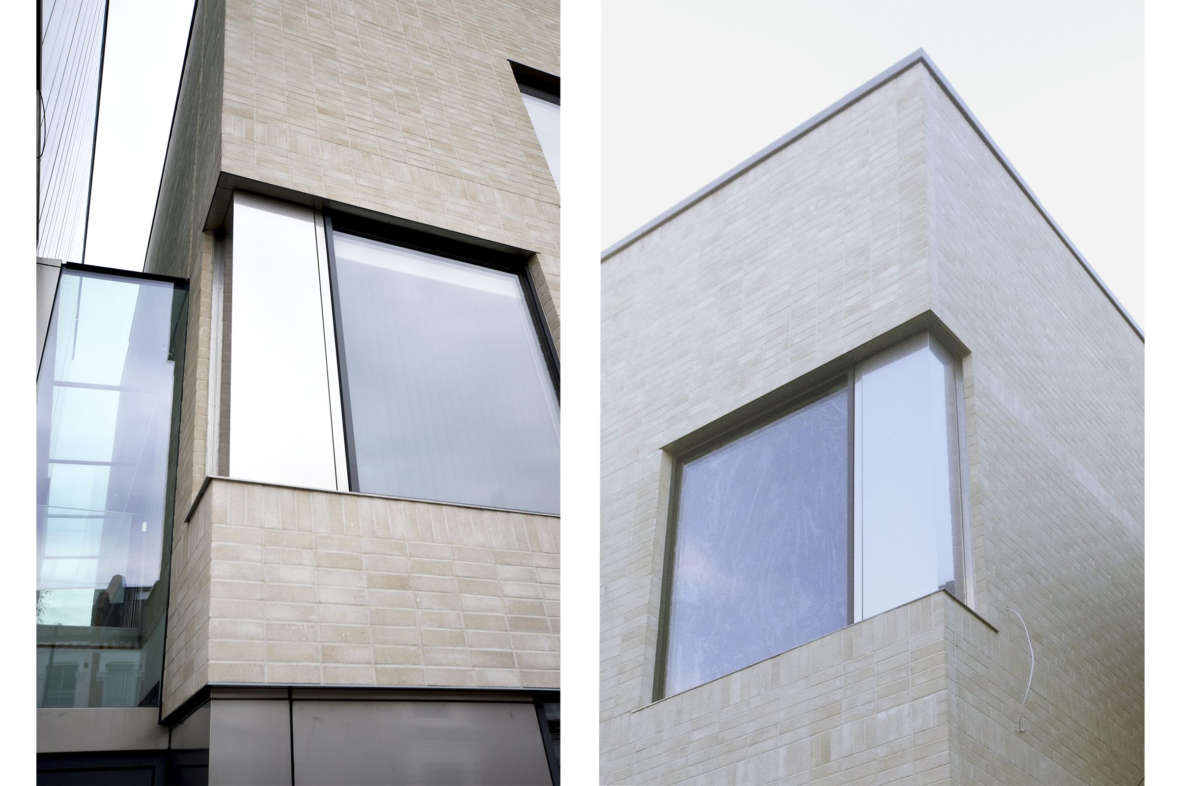 Clapham Park Terrace is a self-build project undertaken by our client and was designed by architect Carl Turner. The house completes a trio of contemporary builds set within a period terrace in south east London. We engaged with the client at a relatively early stage in the build, working together with Roy Middleton Interiors we produced working designs for the uniquely individual ventilation openings. These are stainless steel clad corner panels situated alongside the main windows on the first and second floors. Designed to allow extra ventilation during hot days in the summer they are hinged on the sides and open up by approximately 30°. The internal finish is in solid walnut and fits flush with the internal walls. Other areas of the house also had flush-fitting frameless walnut doors as well as stainless steel cladding and guttering details which we have also designed, manufactured and installed.