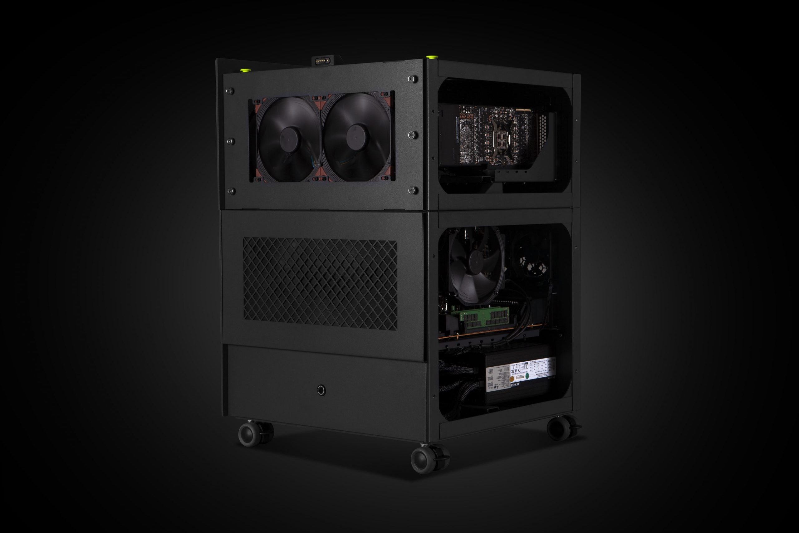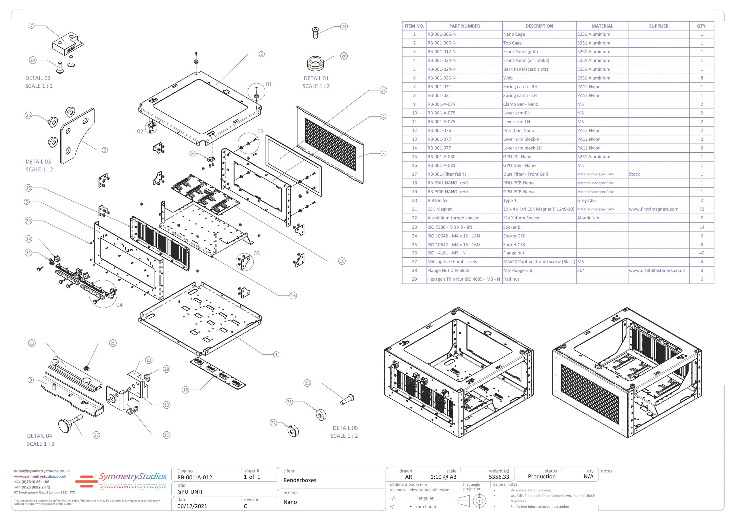 Built entirely from scratch employing a bottom up design process Symmetry Studios have had the fantastic opportunity of working alongside the development team at Renderboxes to produce a range of high power workstations built for the most demanding tasks. Renderboxes are high performance machines tailored for users that demand extreme processing power to execute their projects with speed & reliability. In use across a range of industries including big screen film post production, CGI & visual effects, 3d modeling & animation and digital art, the Renderbox range scales from the entry level Atom, an air cooled system with capacity for 2 top of the line Nvidia (Quadro or RTX) GPU's through to the Molecule, a fully water cooled system with capacity for 8 GPU's (when used alongside the 'Flow' a dedicated cooling chamber that is capable of cooling such a large array of high power GPU's). Symmetry Studios have not only managed the technical design and manufacture of the physical elements of the systems but have also worked hard to shape the design language and ensure that the products delivered at the end of the line are exceeding customers expectations in both function and style. We are fully involved in the technical research & development for the cooling systems which are fully customised for each system and require extensive bench testing and flow analysis.
